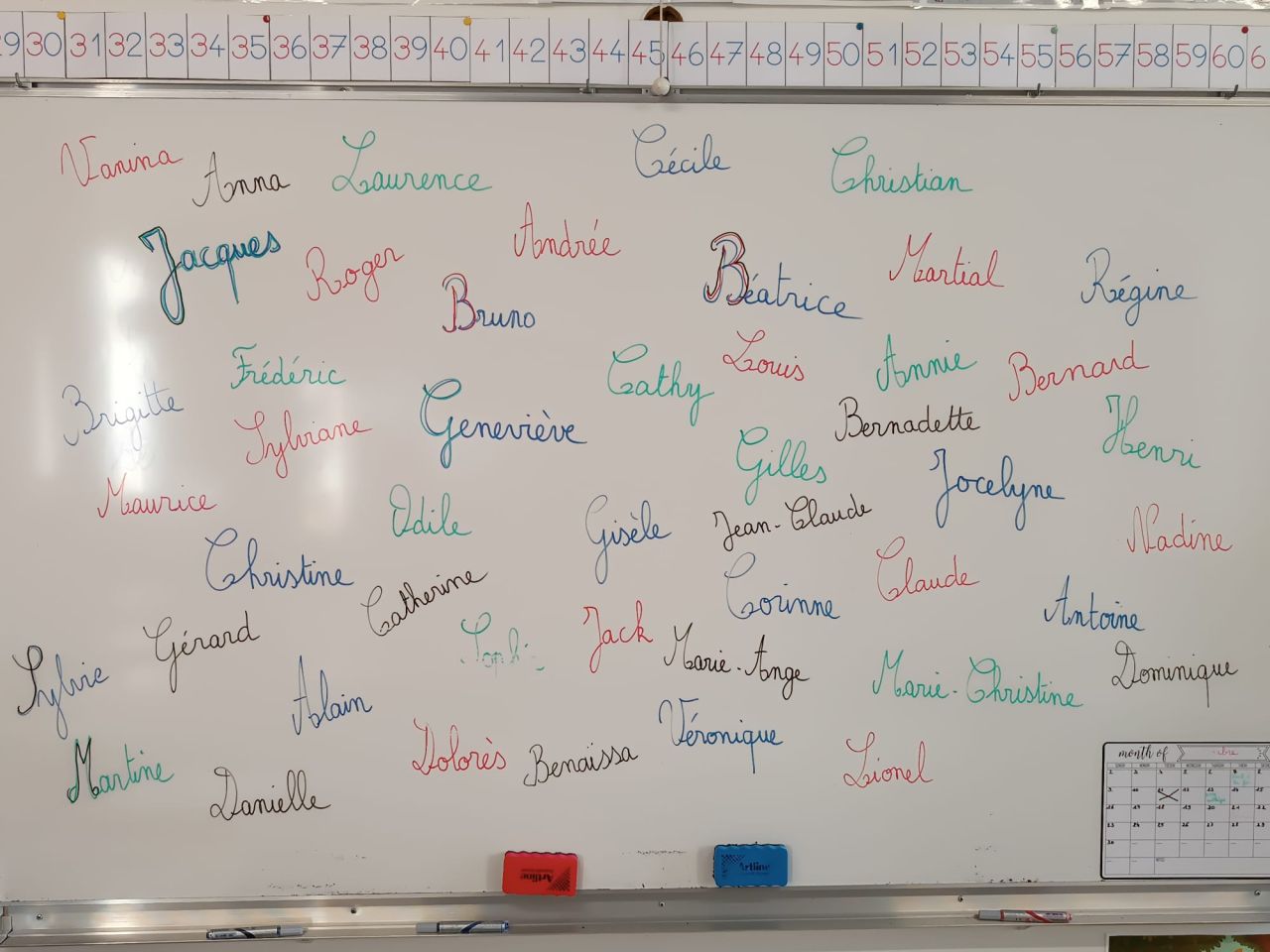 Vendredi matin, nous avons mélangé tous les enfants de l'école pour faire des ateliers sur la Toussaint et sur les saints. Un atelier memory est dobble des Saints, un atelier pour expliquer la Toussaint, un atelier sur le prénom d'un grand-parent choisi et son origine, et un atelier où nous pouvions poser des questions à 3 mamies qui sont venues avec nous à l'école. Raconte-nous, mamie. Un très bon moment d'échange entre les enfants et les grands-parents.